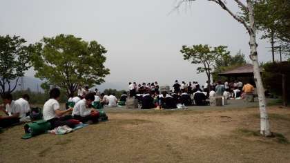 天候は薄曇り、軽い車酔いの生徒がいるくらいで全員元気です。