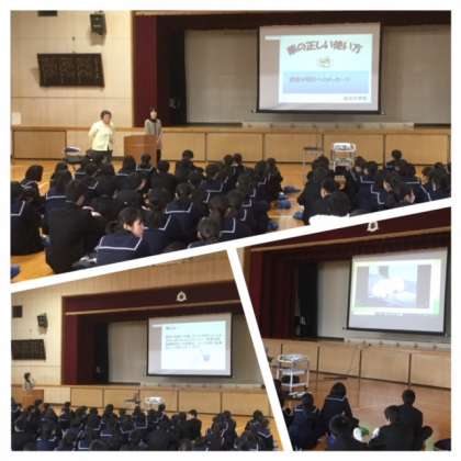 土曜授業の3限目に、本校の学校薬剤師の関野裕子先生から2年生を対象に、薬物乱用防止、並びに薬の適正使用についてご講話いただきました。