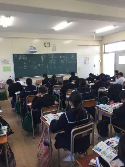今日の1年3組の理科の授業風景です。 みんな、真剣に取り組んでいます!