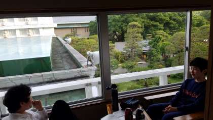 ホテル三翠園到着。 庭園をバッグにまったりしてます