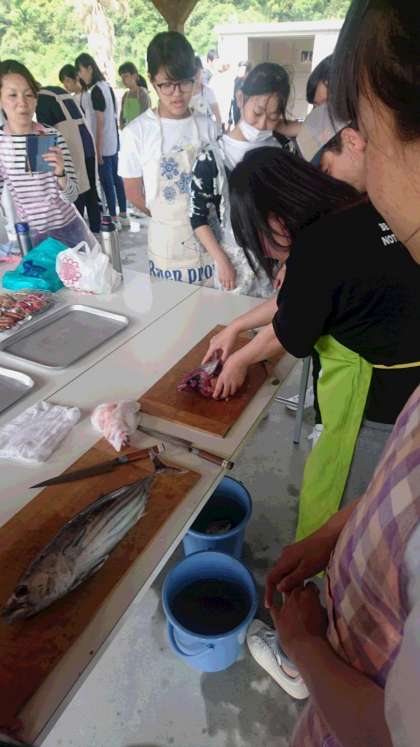 3年生 修学旅行 2日目 カツオのたたき体験1