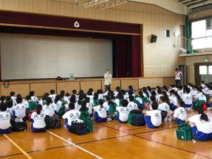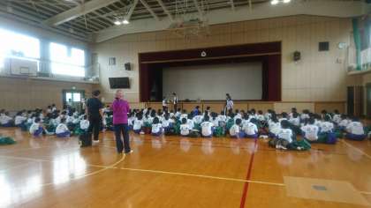 1年生の一泊移住出発前の集合の様子です。
