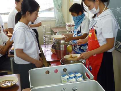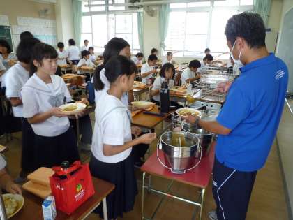 中学校給食で初めての食缶によるカレーの提供がありました。