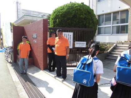 本日は城東区保護司会の皆様に朝の挨拶運動にお越しいただきました。