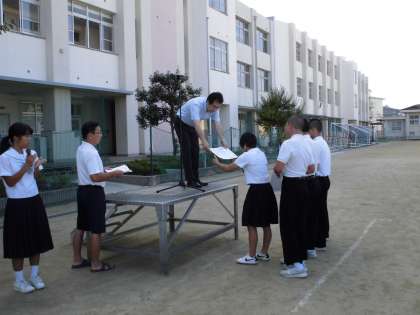 遅くなりましたが、9月18日の全校集会で水泳部と柔道部の表彰がありました。