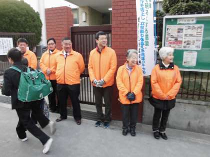 本日、早朝から校門にて早朝から地域の皆様に「朝の挨拶運動」に来ていただきました。