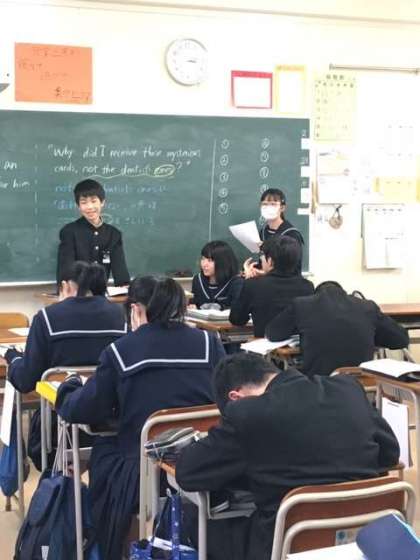 「生徒が先生」2組の1班、2班の授業でした。アドリブもあり、班の協力も良好。学級でスチューデントティーチャーを盛り上げることができました。素晴らしかったです。