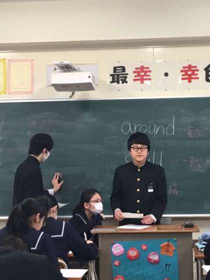 今日は1組5班と6班の番。まず5班は、事前の数時間の授業で、準備をとても丁寧に進めていました。オリジナルプリントも、黒板の文字も見やすくわかりやすかったです。スチューデントティーチャーは緊張しながらも頑張りました。