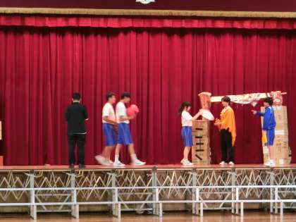 手作りの舞台背景を設置して、道具、衣装を身にまといこれからいよいよ通しで演じます!79期生渾身の一作をぜひお楽しみにしてください。