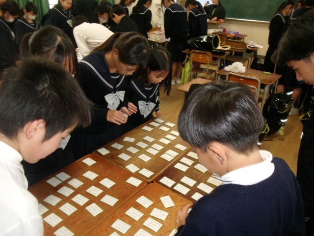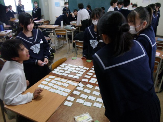 来たる2月2日の本選に向けて、クラスごとに班内で枚数を競いました。これから冬休み等を活用して、どんどん和歌を覚えていきましょう!