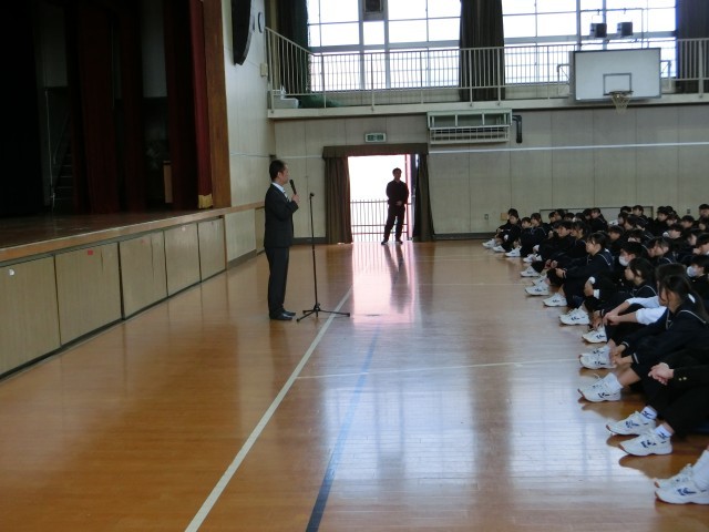 はじめにテニス部の表彰がありました。そして、校長先生より目標を持つことの大切さについてお話がありました。