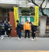 1月10日、本校正門で登校して来る生徒たちに向かって、地域の方が、「おはようござ...