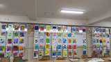 2. 国語科 技術室では、各学年の国語の授業での作品が並んでいます。 習字作...