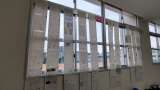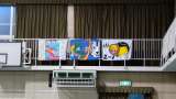 9. 学級旗 体育館の2階手すりからは、体育大会のときに作成した、各学級の学...