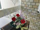 ヤナギが白く化粧されています。 玄関がひと足先にクリスマスの装いです。
