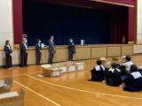 2年生校外学習、予定通り帰ってきました。解散式の様子です。