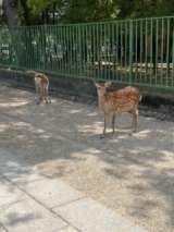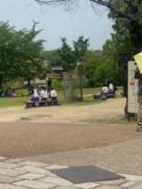 奈良公園で班活動をしています。お天気もよく観光客でいっぱいです。