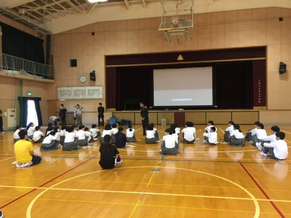 5月15日水曜日放課後、クラブ代表生徒と全教職員を対象に、救急救命講習を実施しました。城東消防署のみなさんのご指導で、AEDを使用した心肺蘇生の手順を確認し、人形を使って練習をしました。一次救命措置の大切さをよく理解するとともに、その方法を身につけることができました。