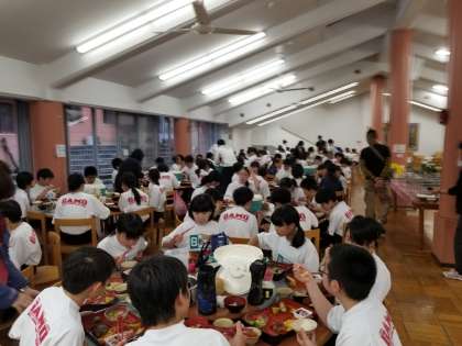 予定通り、夕食が始まりました。みんな元気に、おいしくいただきました。