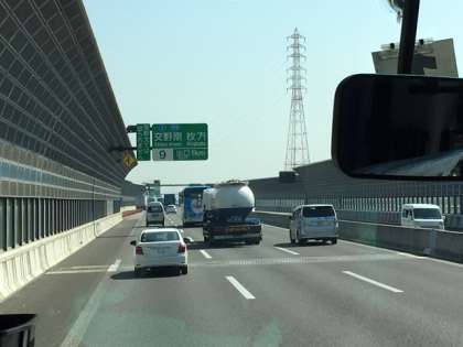 第2京阪。渋滞なく順調です。バスの中では事前に準備していた音楽がDJ付きで流れています。
