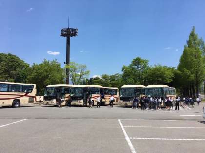 飯田運動公園に到着です。今から学級写真を撮影して昼食です。
