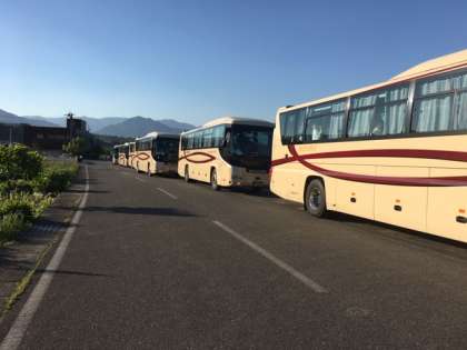 ラフティング終了して今から宿舎に帰ります。ラフティング中の写真は付添のカメラマンさんが撮ってくださっています。ホームページにはアップできませんでした。