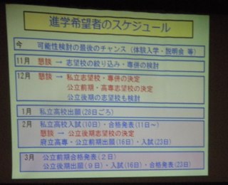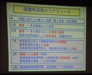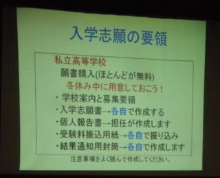 当日説明したスライドから、進学希望者のスケジュール、入学志願の要領、就職希望者のスケジュールについて掲載します。