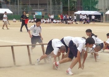 2年男子の障害物競走の様子です。