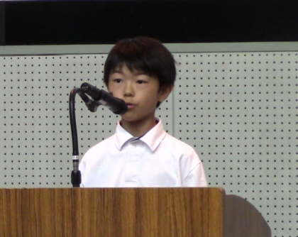 本校からは1年2組の堀 勇登くんが出場しました。3年生の出場者が多い中、2番目のスピーチで、緊張した中でのスピーチだったと思いますが、日頃の練習の結果、見事優勝されました。審査基準(criteria)は1Pronunciation,2Memorization,