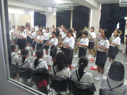 写真は、吹奏楽部と美術&マンガ部の様子です。