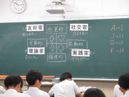 SPカードと呼ばれるトランプを使って、一人ひとりが自分の性格のカードを選び、それに応じた形で、自分の適性を知り、また職業の適性を知り、どのクラスも楽しみながらも、真剣に、自分の進路を考えるきっかけになりました。