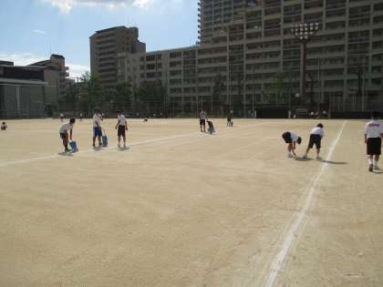 明日9月27日(金)の体育大会に向けて、準備をしている様子です。