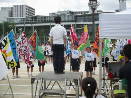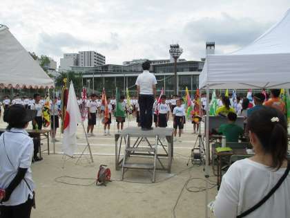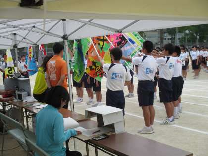 体育大会の生徒代表宣誓の様子です。各学年の生徒代表と体育委員が一堂に会し、宣誓します。