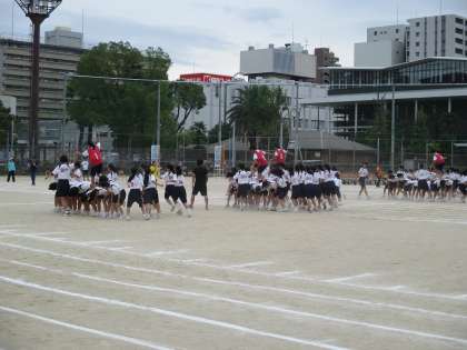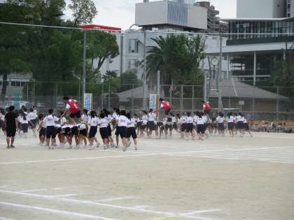 体育大会の2年学年種目の「船頭渡し」の様子です。