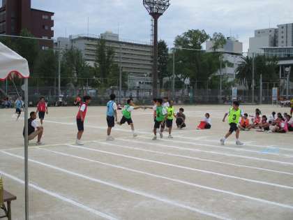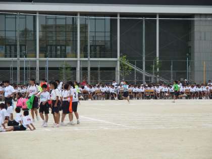 体育大会の2年生のスウェーデンリレーの様子です。