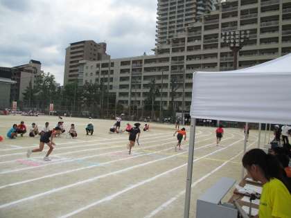 体育大会の運動部対抗リレー、女子の部の様子です。