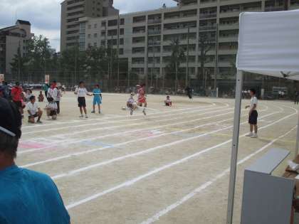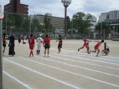 体育大会の運動部対抗リレー、男子の部の様子です。