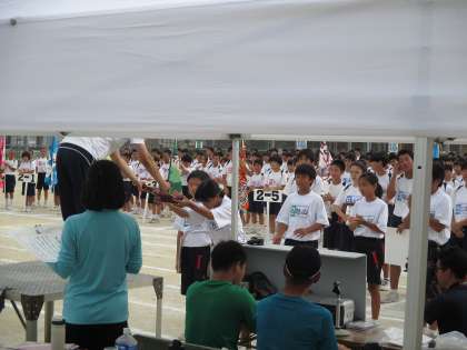 体育大会の1年生の表彰式の様子です。