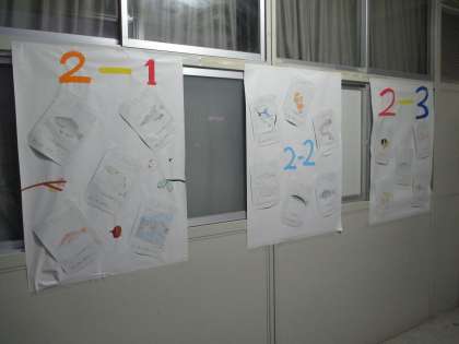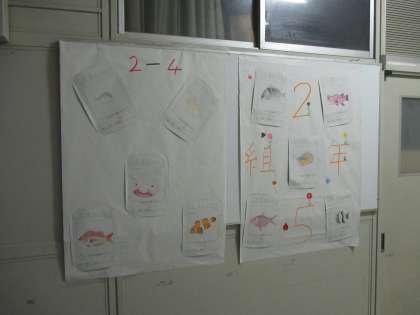 2年生の理科による「魚のスケッチ」の展示作品です。