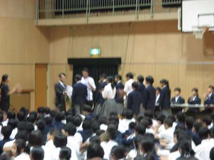 金賞・銀賞クラスの合唱の発表が終わり、続いては、学級旗コンクールの結果発表です。