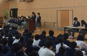 立候補者による、「これからの生徒会活動について」の演説の後、推薦人による応援演説が行われました。教室に戻って選挙管理委員会の運営により投票が実施され、新役員が選出されました。