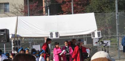 11月23日(土・祝)9:00〜、蒲生公園グラウンドにて、地域行事の第8回城東区猿楽(SARUGAKU)祭が開催されました。地域や諸団体が食べ物や小物などを出品・販売し、特設ステージではさまざまな団体がダンスや演奏などを発表しています。