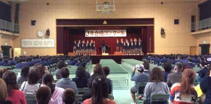 平成26年10月31日(金)5〜6時間目、体育館にて3年生合唱コンクールを開催いたしましたところ、120名もの保護者の皆様に参観をいただきました。お忙しい中、ご参集くださり、誠にありがとうございました。