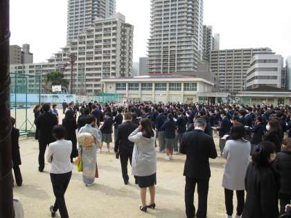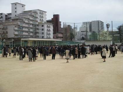 例年は、卒業証書授与式が終了した後、卒業生は蒲生グランドまで進みますが、今回は本校の運動場となりました。その様子です。