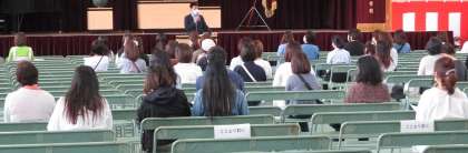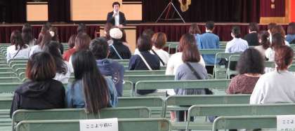 学校長のあいさつ、1年所属教員等の紹介、1年学年主任のあいさつ、生徒指導主事の講話、給食や保健室、進路関係の話に続き、PTA会長からあいさつで、終了となりました。