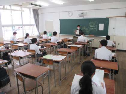3年生の登校日の様子です。出席番号の奇数・偶数に分かれ登校しました。教室前で手の消毒をし、健康観察の後、初めて学級で活動をしました。新しいクラスメートだったせいか、緊張した様子でした。