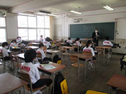 5月27日(水)午前中、1年生の登校日がありました。教室で、健康観察、配付物や提出物の確認を行い、ろう下で視力検査を、多目的室で二測定を、ミーティング室で聴力検査を行いました。