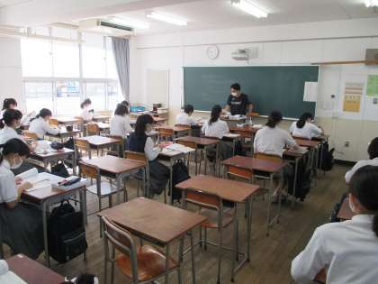 写真は、午前の1コマ目の理科・数学の授業の様子です。