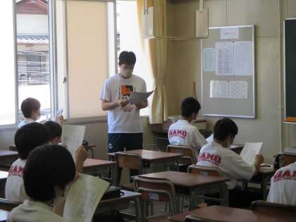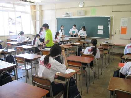 学級活動で、日直カードや自己紹介カードなどを作成している様子です。