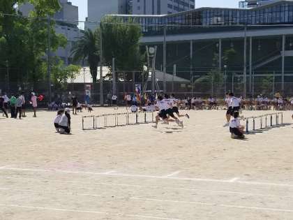 写真は、50mハードル走の様子です。